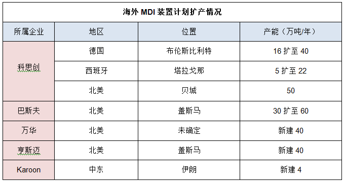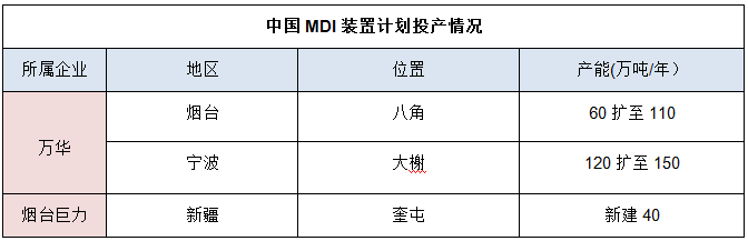 2019年聚氨酯原料扩产方案合集(MDI,TDI)