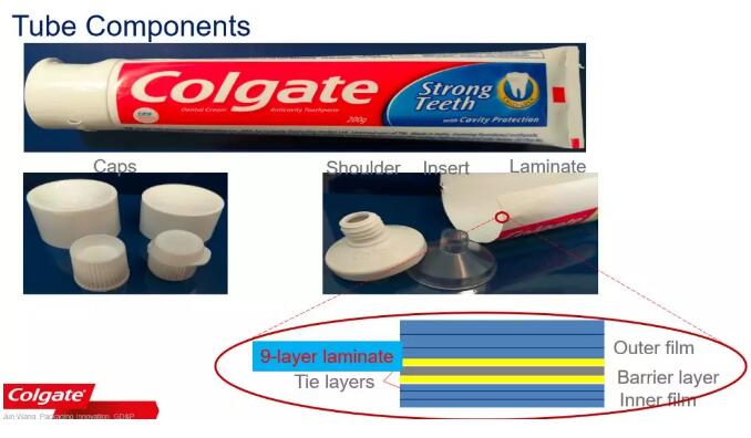 根据《 APRDesign®塑料回收利用指南》,高露洁棕榈将牙膏管中的部分材料进行了改进: