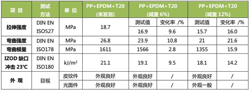 “低密度PP”就是指在聚丙稀管理体系中添加小量填充料,根据改性材料使其做到高添充聚丙稀的缩水率、结构力学及耐高温等特性,进而完成减重。下边以广东省茂业的低密度PP为例子,详细介绍其在汽车轻量化中的运用。