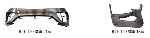 现阶段愈来愈多汽车厂家在全力促进保险杆和门边框等轿车流行制件的汽车轻量化,低密度 薄壁化计划方案将大有用武之地,下面的图是广东省茂业一部分经典案例。 低密度 薄壁化计划方案能够 使制件的减重力度进一步扩张,成形周期时间进一步减少。以所述低密度原材料为例子,某车系的保险杆,根据模貝薄壁化完成减重14%,选用低密度原材料能够 减重8.5%(相对性TD20),总体制件减重力度达到20%之上,而且商品外型(虎皮鹦鹉纹和缩痕等)显著好于一般的薄壁化PP。