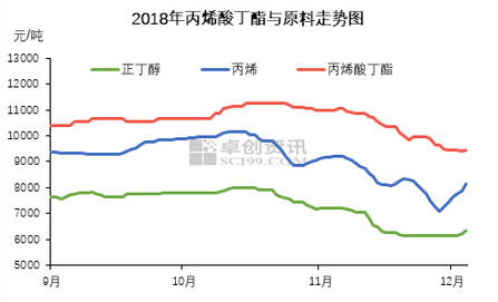 从最基本的供需变化来看,丙烯酸及酯取丙烯酸丁酯为代表分析,12月装置负荷提升,供应明显增多,很可能出现供过于求的现象,这一可能给市场铺垫了一层悲观色调。然而月初时分,恰逢库存低位,负荷初始提升,华谊装置重启延期等多因素影响,场内并未直接进入供需过剩的状态。