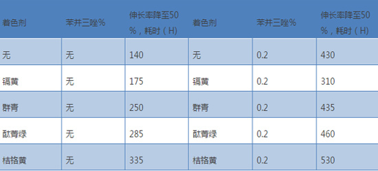 表 2不同着色剂对含苯并三唑的高压聚乙烯薄膜的光稳定性的影响