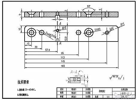 ● 补齐别的尺寸及技术标准。这一环节可逐一零件开展,先补齐别的尺寸,比如轮廊尺寸尺寸、部位尺寸等;再标注各生产加工面的粗糙度规定及倒圆角、圆弧的生产加工状况,最终是选料及热处理工艺,并对本零件开展取名等。