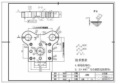 ● 其他模版上型孔的配置标注。在开展凹模洞边的刀口尺寸测算时,如何处理半经尺寸R,实践活动中视对R的精确测量方式及其应用规定而定,若有能精准测量R值的测量仪器,则需对R值开展刀口尺寸的测算;如仅有水平尺等基本测量仪器,则可在凹模图上标注原注R值。