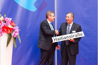 海天领导人员张剑峰和张剑鸣参加了庆典活动。本地省长还产生了一份特殊的礼物:新企业门口的路面已宣布申请注册为"海天街"。