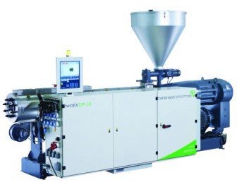 展位上另一台展览的机器设备是twinEX 93-28D双螺杆挤出机,可用以管件、铝型材及其PVC塑胶板材挤出生产制造。近些年,塑胶铝型材销售市场朝着环境保护、环保节能的方位发展趋势,对高效率节能环保产品要求也日益升高。依据运用不一样,挤出机生产量范畴从115KG/小时到2,500KG/钟头。