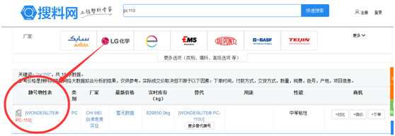 搜料网提供数据服务:目前搜料网已收录10万+塑料型号,880+个全球主流的橡塑生产厂商,3500+个全球主流产品商标;500+种橡塑类别的原厂中文物性表,部分型号收录UL黄卡、MSDS证书