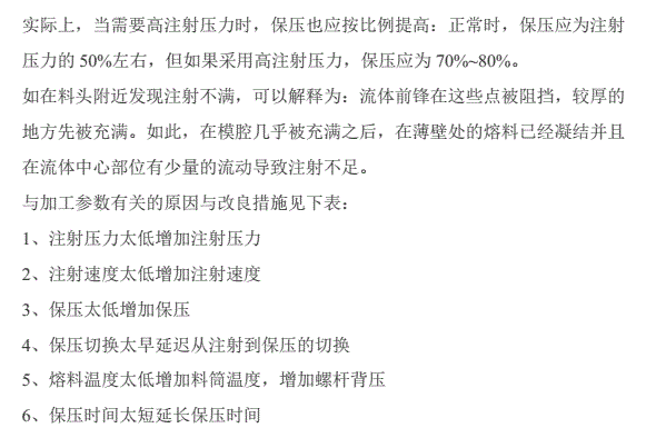 •主流道、分流道、浇口等的信道部分偏细,从而导致压力传递不畅