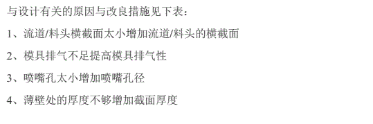 (2)分流道太小或配置不当,应尽量安排得平衡合理或增加分流道尺寸。